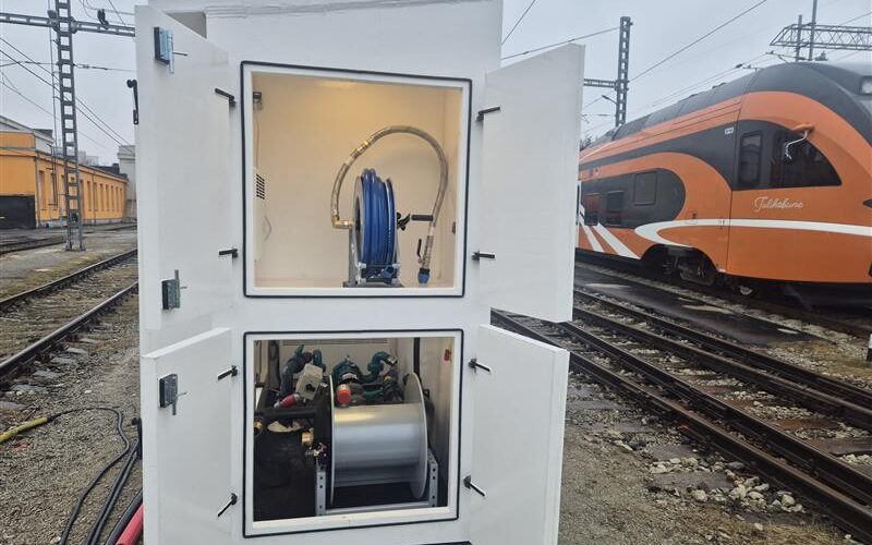We have manufactured a special thermoplastic train maintenance cabinet for the Estonian railway operator Elron, which is designed to be extremely durable and efficient and convenient for supporting maintenance work. In manufacturing the cabinet, we used high-quality Paneltim panels, which not only keep the hoses and pumps inside the cabinet warm even in cold conditions, but are also easy to clean and resistant to contact with chemicals and other harmful substances. This maintenance cabinet has been carefully designed and manufactured from the highest quality materials to ensure its long service life and high durability in various train maintenance process conditions. In addition, we designed the cabinet so that it has enough space for all the necessary tools and spare parts, thereby allowing maintenance workers to do their work more efficiently and quickly. The versatility and functionality of the maintenance cabinet make it an invaluable tool in the maintenance process of Elron’s trains.